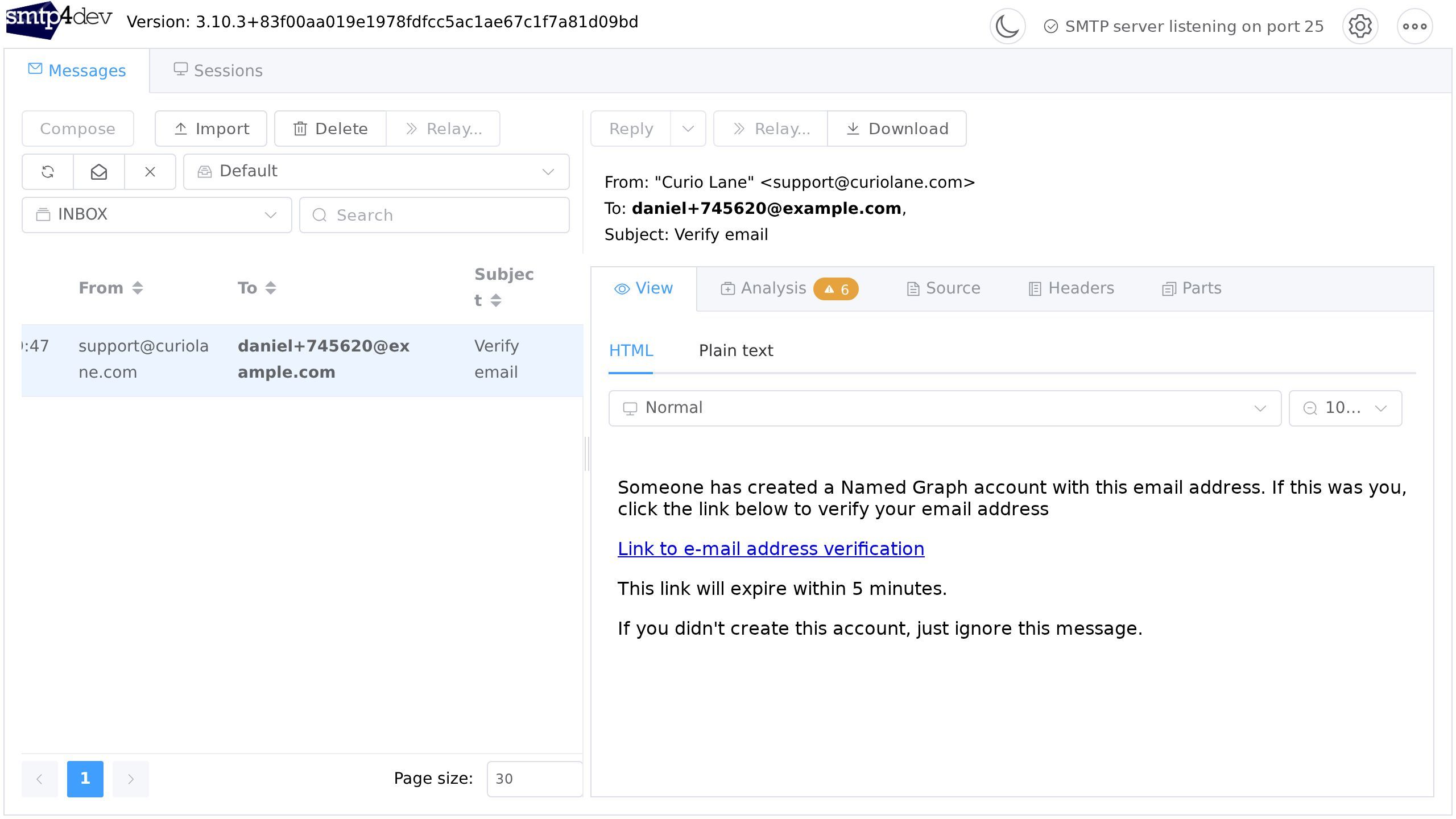 Screenshot with the Link to e-mail address verification link