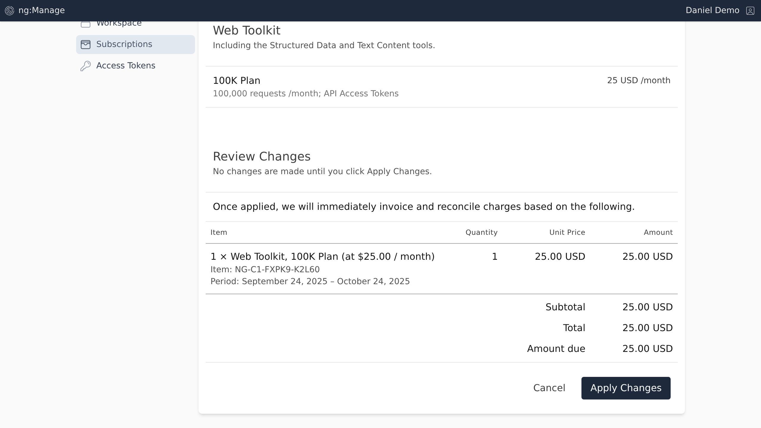 After confirming any feature and pricing changes, Click the Apply Changes button.